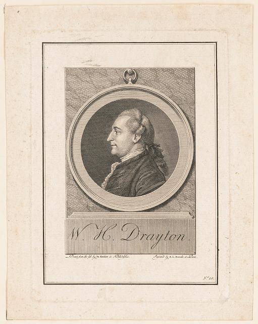 A profile portrait of Drayton (1742-1779) by Du Simitière was one of a set of fourteen engraved and published in Paris by Benoît-Louis Prévost (ca. 1735-ca. 1804) in 1781 as Collection des Portraits des Généraux, Ministres & Magistrats qui se sont rendus célèbres dans la Révolution des Treize Etats-Unis de l'Amerique Septentrionale.