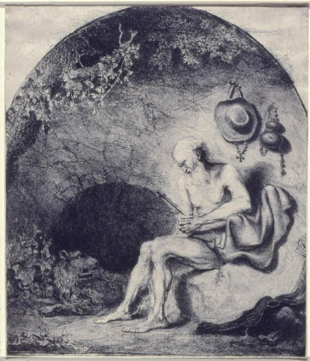 Etching and drypoint by Ferdinand Bol (1616-1680), St. Jerome (1644)