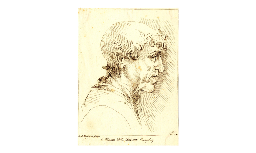 Etching by Arthur Pond (1701-1758), after Andrea Mantegna (ca. 1431-1506), Head and shoulders of an unidentified man, in profile to right, a shadow on the right, from the series "Prints in Imitation of Drawings" (1735)