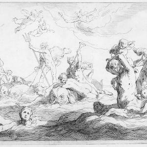 Nicolas de Launay (1739–1792) engraved many prints after original works by Charles Dominique Joseph Eisen (1720–1778). Pictured here is an etched and engraved 1773 illustration to André du Ryer's "Scévole," in Jean-François Marmontel's Chefs d'oeuvre dramatiques (Paris, 1773).