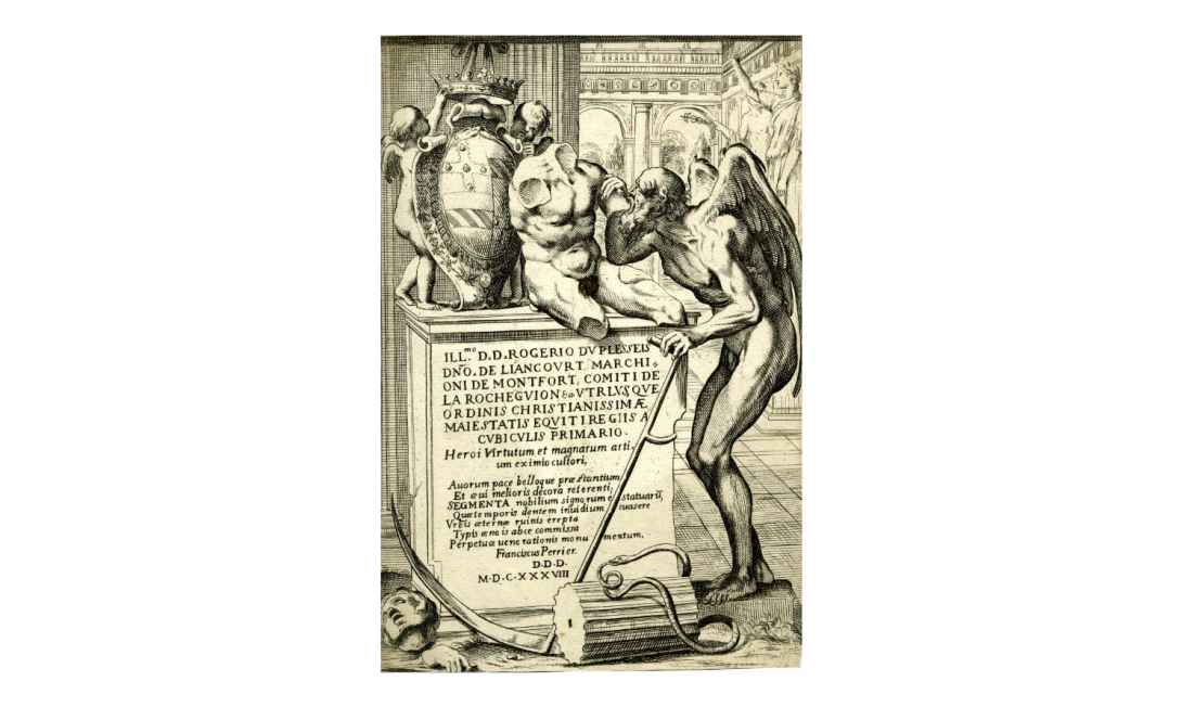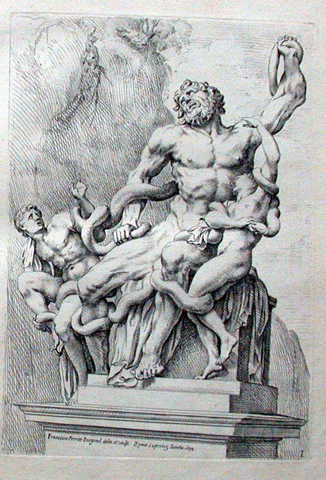 François Perrier (1590–1650) was a French painter, draftsman, and printmaker whose two collections of prints after antique sculptures, the Segmenta nobilium signorum et statuarum quae temporis dentem invidium evasere (Paris, 1638), and Icones et segmenta...quae Romae adhuc extant (Paris, 1645) provided visual repertories of classical models for generations of European artists and connoisseurs. The frontispiece and a representative plate (The Laocoön group) from Segmenta are pictured here.