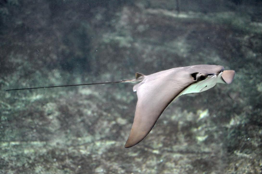 Several species of ray inhabit the waters around Delaware, including the cownose ray (Rhinoptera bonasus), pictured here.