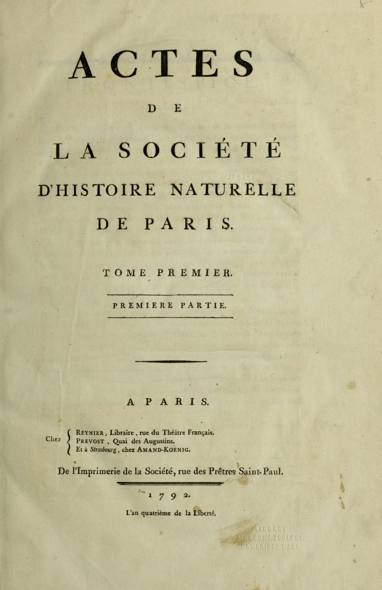 Actes de la société d'histoire naturelle de Paris: tome premier, premiere partie