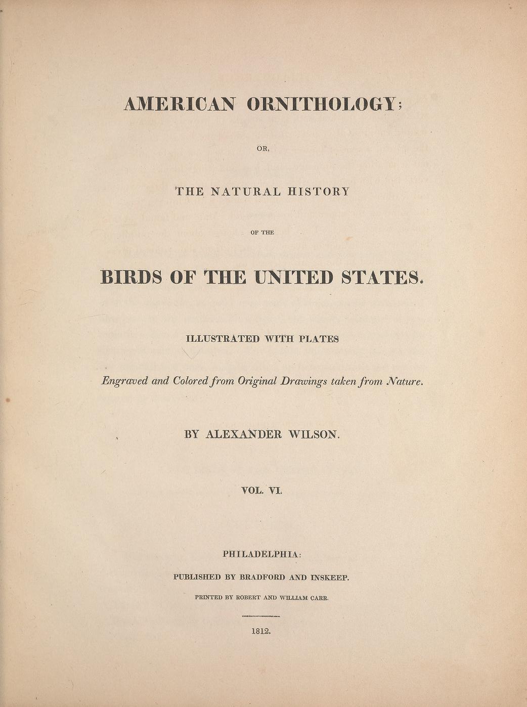 American Ornithology; or, The natural history of the birds of the United States: illustrated with plates engraved and colored from original drawings taken from nature