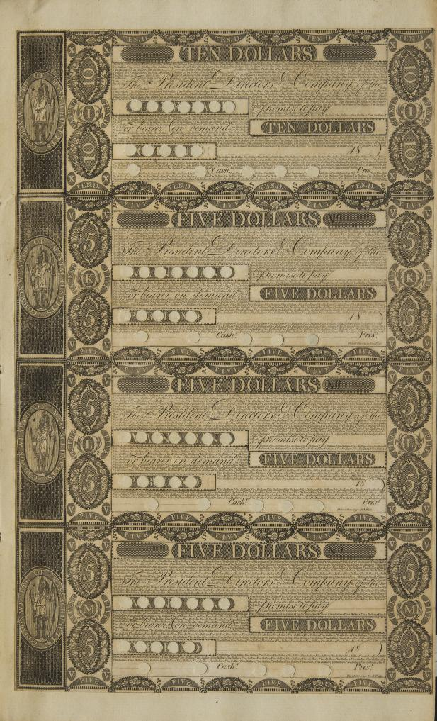 Pictured here is a page from Perkins' Bank Bill Test (Newburyport, Mass., 1809) / https://archive.org/details/perkinsbankbillt1809jaco/page/n1/mode/2up