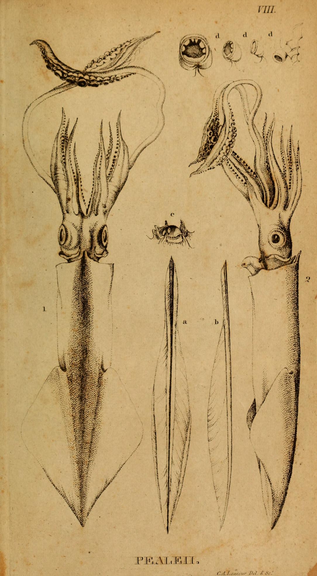 C. A. Lesueur, "Descriptions of Several New Species of Cuttle-fish," Journal of the Academy of Natural Sciences of Philadelphia, vol. 2, part 1 (1821): 86-101 (described on pp. 92-94 and plate 8) / https://www.biodiversitylibrary.org/page/36831274
