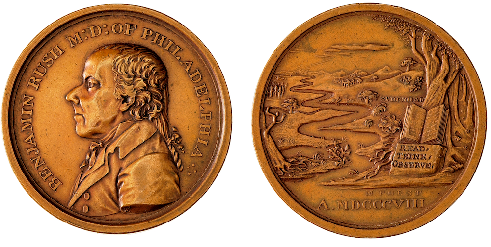 The Library Company of Philadelphia holds the original dies for this medal honoring physician Benjamin Rush (1746-1813).