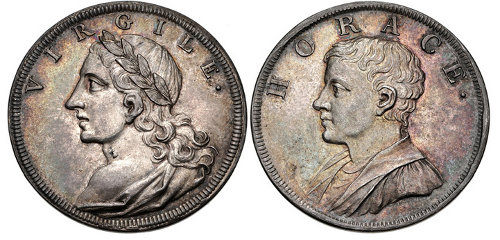 The Peale Museum's medal commemorating Virgil may have been like the one pictured here, by Jean Dassier & sons, 1740-1750, depicting the authors Virgil and Horace.