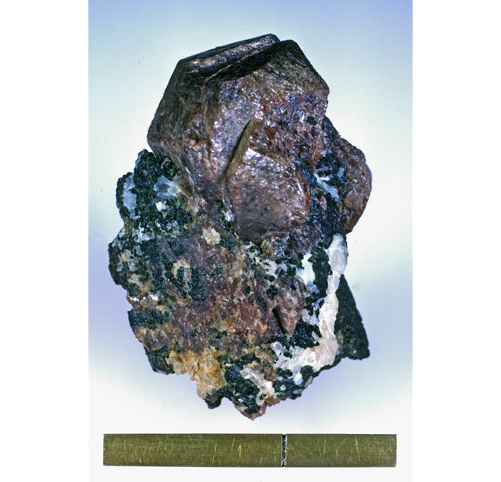 This mineral was zircon; a specimen from New Jersey is pictured here.