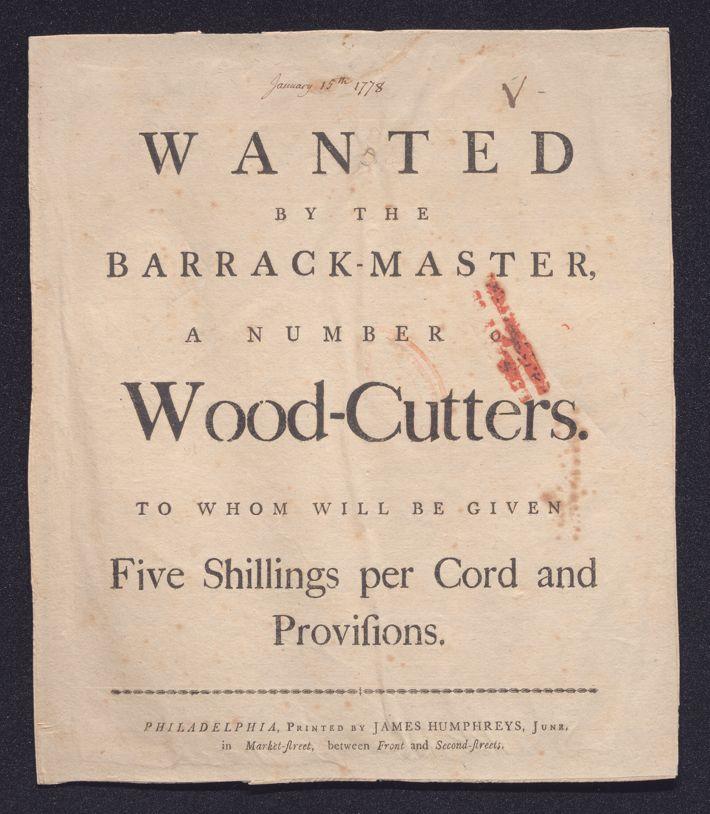 Wanted by the barrack-master, a number of wood-cutters. To whom will be given five shillings per cord and provisions