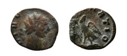 This coin may have been similar to the one pictured here: Antoninianus (billon) Obverse: DIVO CLAVDIO (the Divine Claudius), radiate head right / CONSECRATIO (holy to), eagle standing left, head right. Probably minted in Rome, but copied elsewhere, 270 onwarDu Simitière. P. Webb, The Roman Imperial Coinage, vol. 5, pt. 1