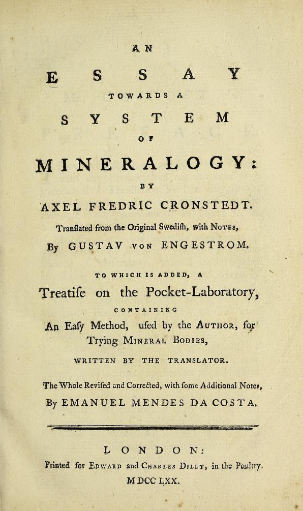 An essay towards a system of mineralogy … edited by E. Mendes da Costa