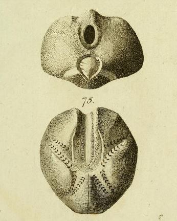 Echinites are fossil sea urchins. This species is now Echinocardium cordatum>/em>, also known as the common heart urchin or the sea potato.