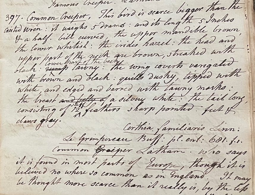 On 15 August 1806, "Creepers. M. F. [male, female]" received from Thomas Hall were entered in the Peale Museum Accessions Book (HSP, coll. 0481).