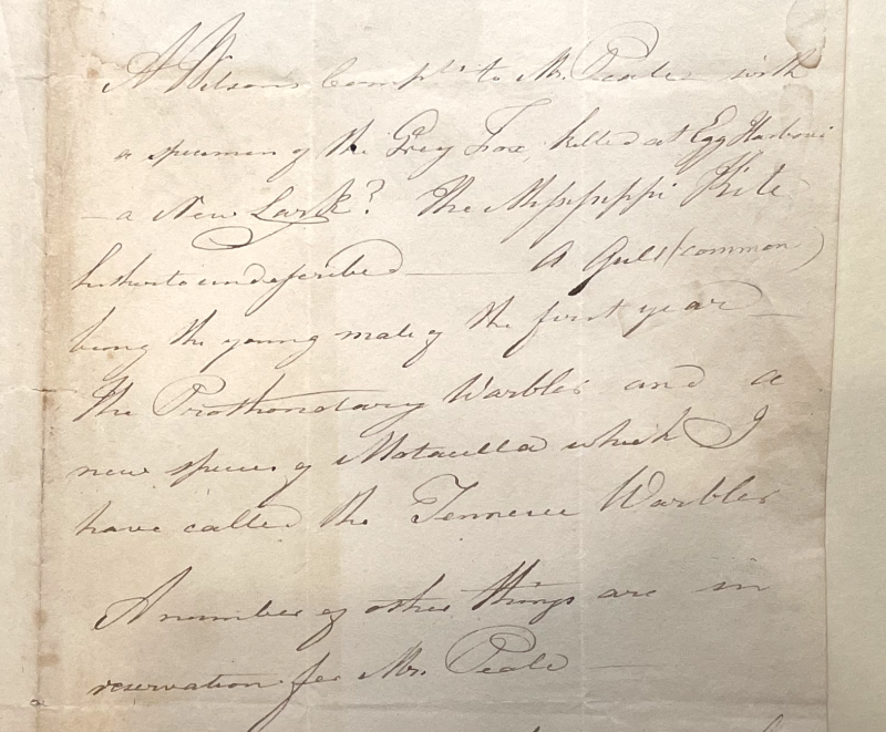 Alexander Wilson, letter to Rubens Peale, dated 22 November 1810. American Philosophical Sociey Library, Peale-Sellers Family Collection, Mss.B.P31, Series 1, Box 3.