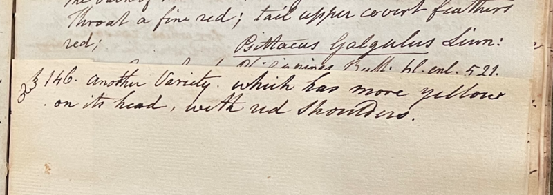 Charles Willson Peale (1741-1827) wrote, in his 16th Lecture (ca. 1799): "146. Another variety, which has more yellow on its head, with red shoulders." This comment was inserted as a footnote after his description of the "Botany Bay Little Lory." (Academy of Natural Sciences of Drexel University Archives, coll. 40)