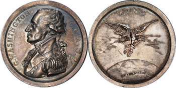 A Silver Medal of Washington struck in Decr. 1805 on the reverse The Eagle with the olive Branch and Lightening hovering over the U.S. in 1783