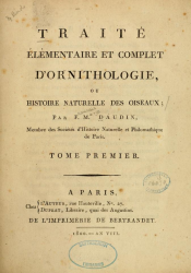 Traite Elementaire et complet D'ornithologie, ou Histoire Naturell des oiseaux: by F. M. Daudin, 4to in 2 Vols.