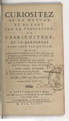 Pierre Le Lorrain, Abbé deVallemont (1649-1721), Curiositez [or Curiosites] de la nature et de l'art sur la vegetation (Brussels, 1723)