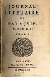 Le Journal Litteraire en 20-1/2 vol. depuis 1718 jusqua 1732 8o.