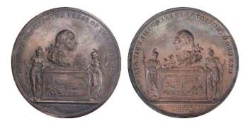 A Medal of Washington, supported by Agriculture and Commerce, the figures of an American Indian and Minerva