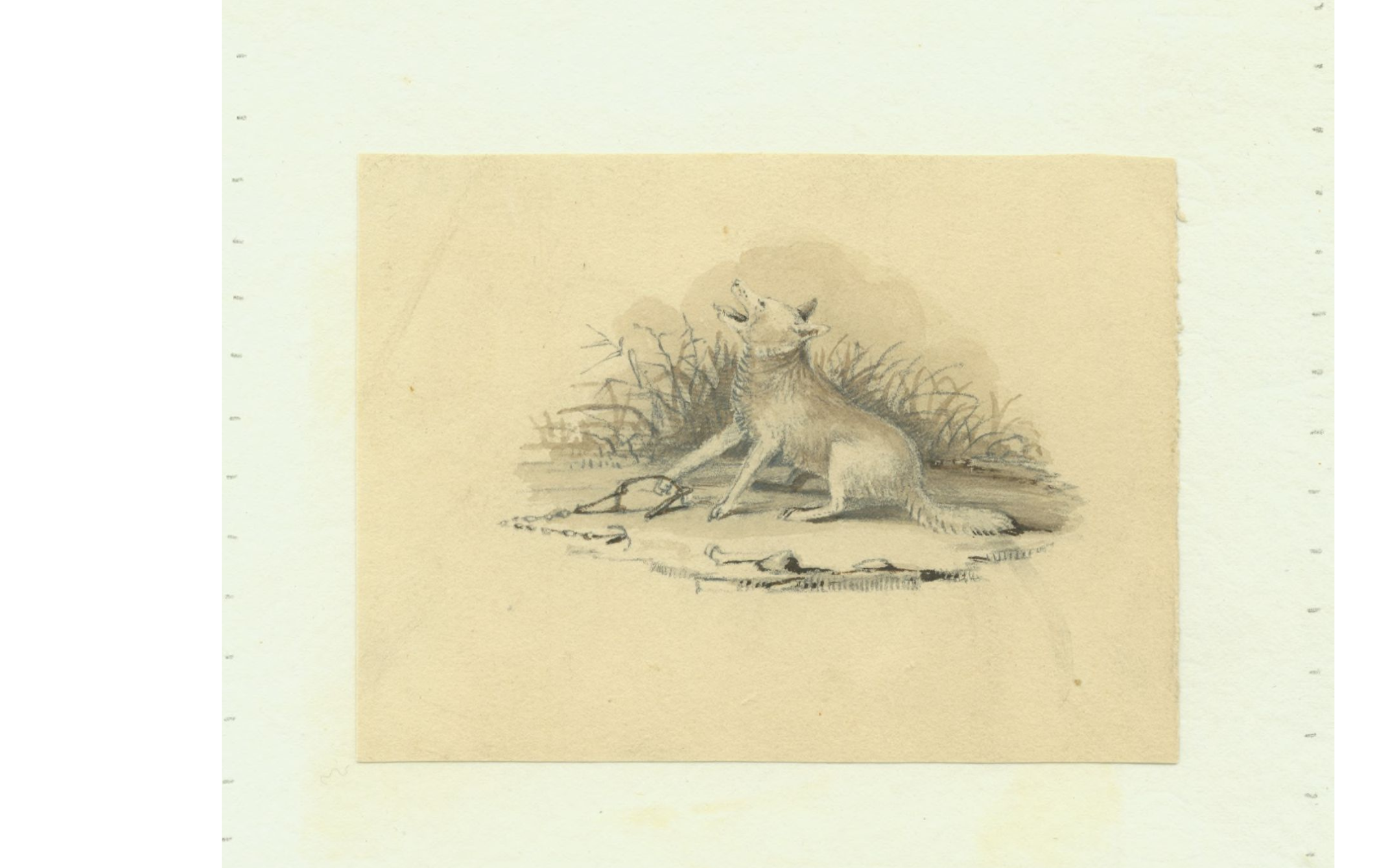 Titian Ramsay Peale executed a watercolor of the prairie wolf while engaged on the Long Expedition, 1819-1821, pictured here.