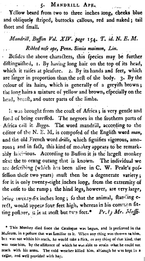 Mandrill, Buffon; Simia maimon, Lin.; Ribbed nose ape, Penn.