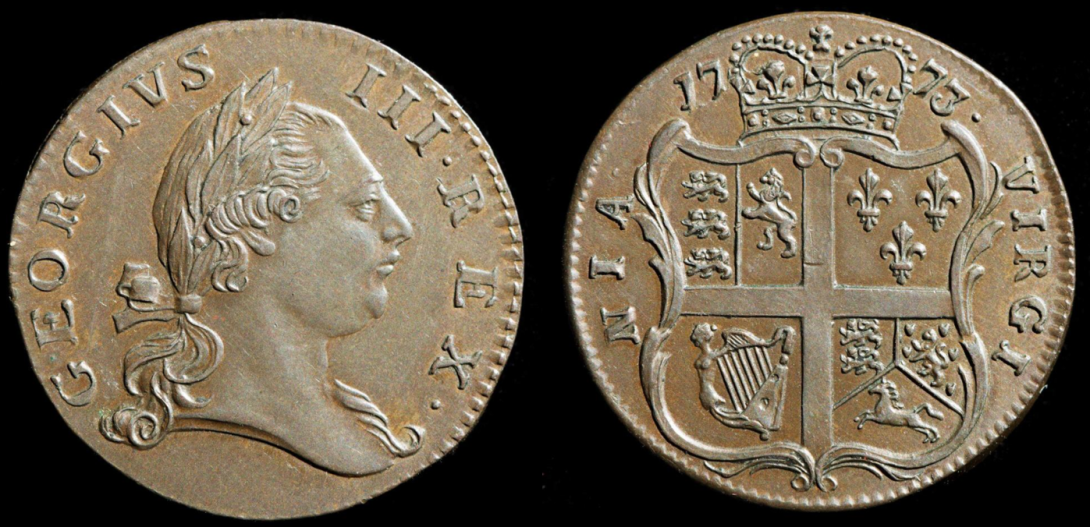 "Virginia halfpence of 1773 have the unique distinction of being the only fully authorized coins with legal tender status which were specifically minted for all or any part of the English colonies which became the United States of America" Eric P. Newman, "Coinage for Colonial Virginia"(1956) / http://numismatics.org/digitallibrary/ark:/53695/nnan10549