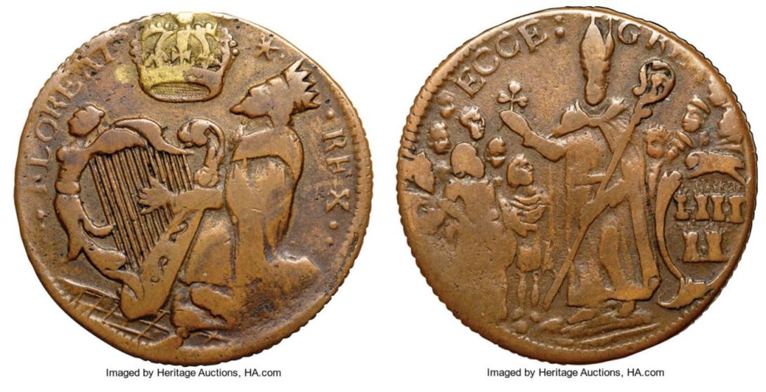 A halfpenny of 1670 is pictured here.
