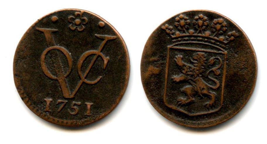 Copper duit issued by VOC (the Dutch East India Company), 1751, Holland coinage, Netherlands East Indies