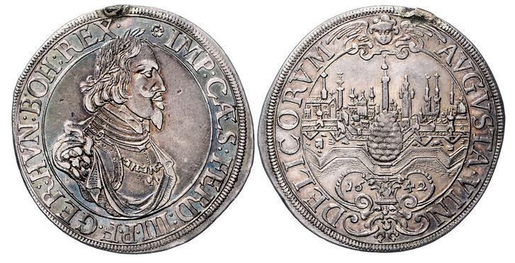 Du Simitière's coin was probably similar to this 1642 silver thaler coined during the reign of Ferdinand III (1608-1657), Holy Roman Emperor from 1637 until his death.