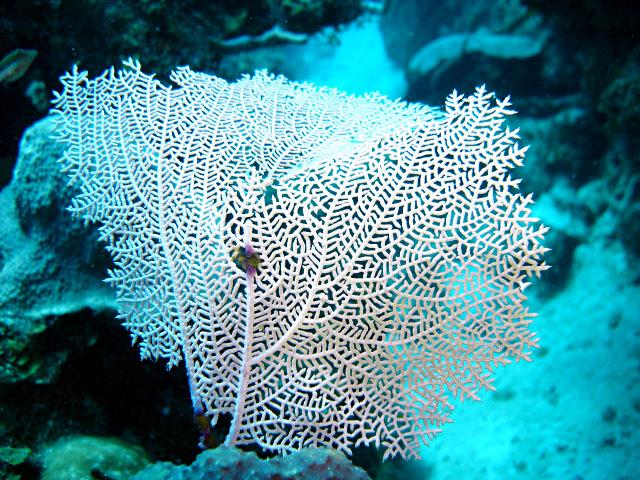 There are many species of Gorgonia, commonly known as the sea fan or sea feather, a sessile colonial soft coral in the family Gorgoniidae, one of which, Gorgonia mariae, which occurs in the tropical western Atlantic Ocean, is pictured here.