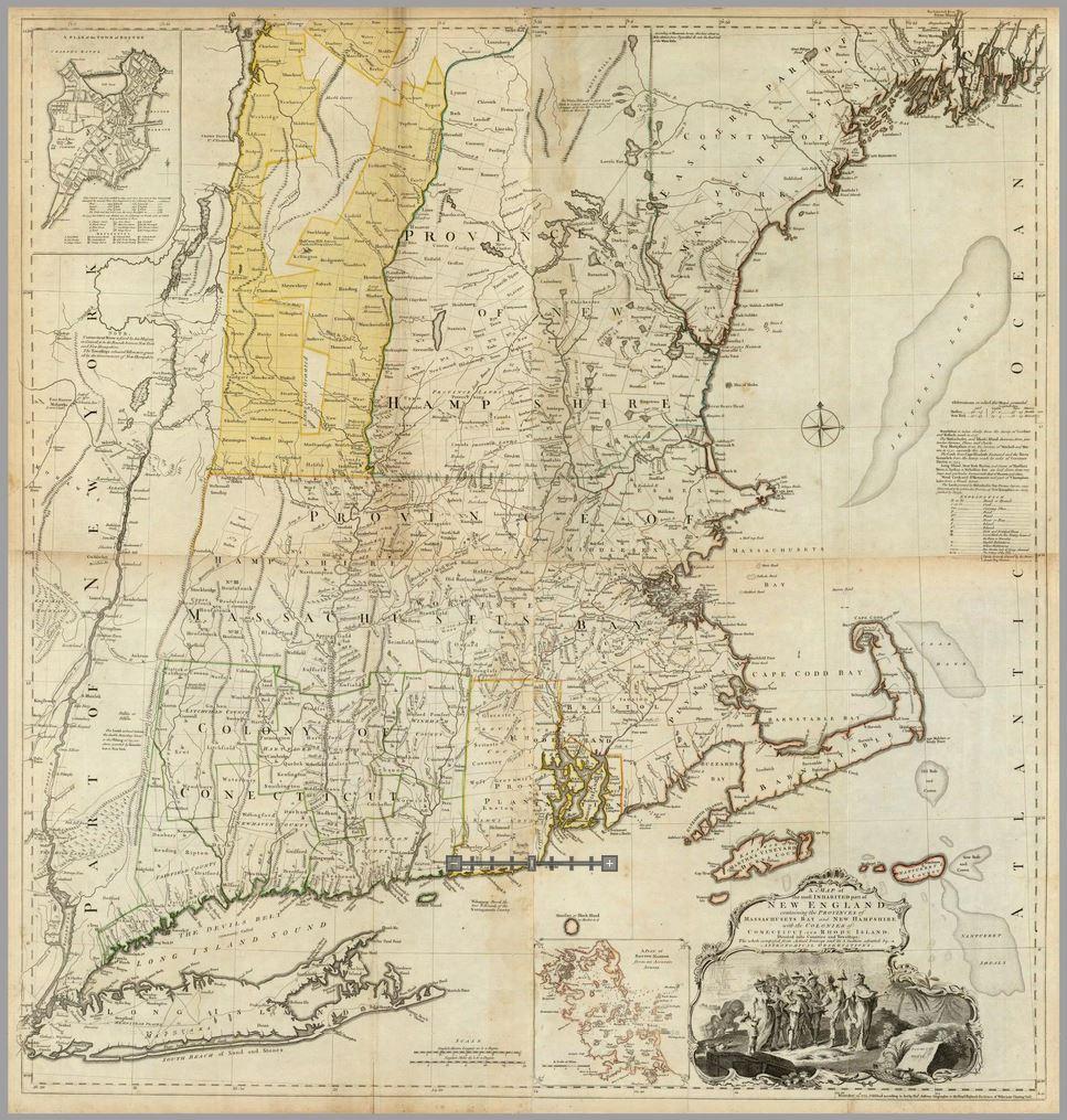 Thomas Jefferys (d. 1771), cartographer, A Map of the Most Inhabited Part of New England Containing the Provinces of Massachusets Bay and New Hampshire, with the Colonies of Connecticut and Rhode Island, divided into Counties and Townships: The Whole Composed form Actual Surveys and Its Situation Adjusted by Astronomical Observations (London: Thos. Jefferys, 1774)