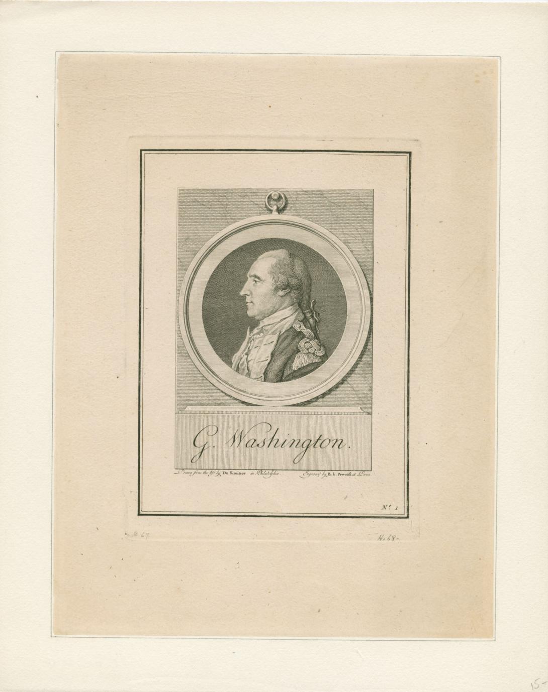 A profile portrait of Washington (1732-1799) by Du Simitière was one of fourteen engraved and published in Paris by Benoît-Louis Prévost (ca. 1735-ca. 1804) in 1781 as Collection des Portraits des Généraux, Ministres & Magistrats qui se sont rendus célèbres dans la Révolution des Treize Etats-Unis de l'Amerique Septentrionale.