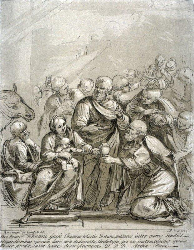 Etching and woodcut printed from four blocks In shades of brown by Arthur Pond (1701-1758), after Benvenuto de Garofalo Tisio or Tisi (ca. 1481-1559), Adoration of the Magi, from the series "Prints in Imitation of Drawings" (1735)