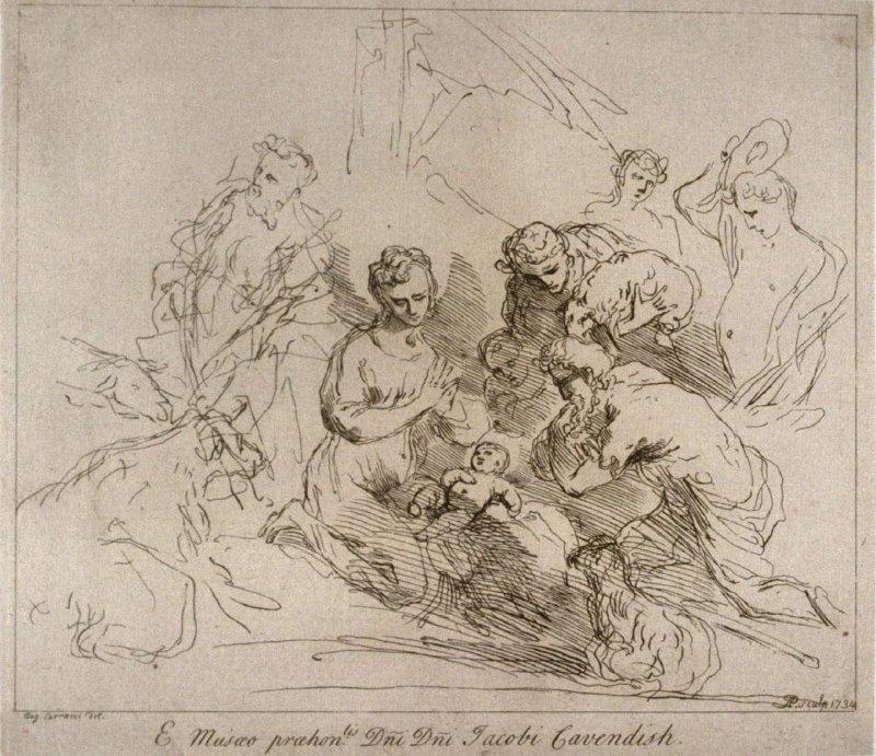 Etching by Arthur Pond (1701-1758), after Agostino Carracci (1557-1602), Adoration of the Shepherds, from the series "Prints in Imitation of Drawings" (1732-1736)