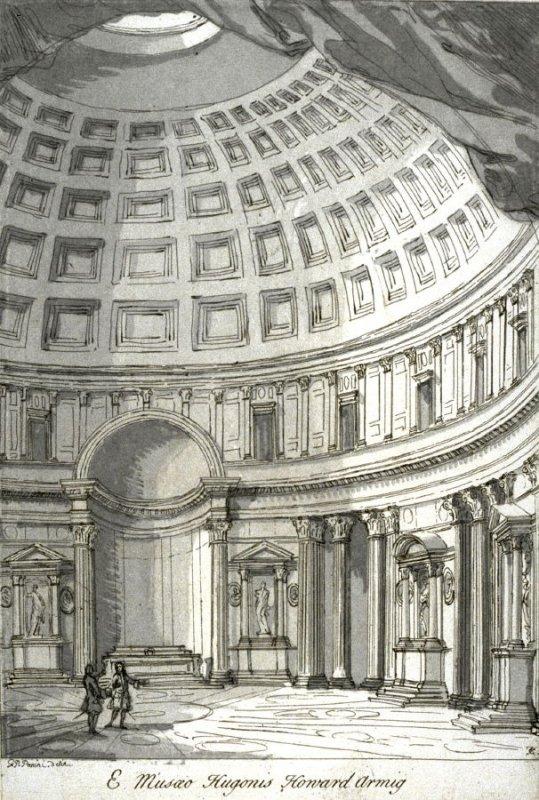 Etching with woodcut printed from three blocks in shades of grey by Charles Knapton (ca. 1700-1760), after Giovanni Paolo Panini (1691-1765), Interior of the Pantheon, from the series "Prints in Imitation of Drawings" (1732-1736)