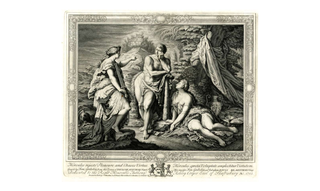 For information on the commission, production, and iconography of the Matteis's painting (in the Ashmolean Museum, Oxford), see Sheila O'Connell, “Lord Shaftesbury in Naples, 1711-1713,” in The Volume of the Walpole Society, vol. 54 (1988):149-219. For the painting, see https://artuk.org/discover/artworks/the-choice-of-hercules-142356