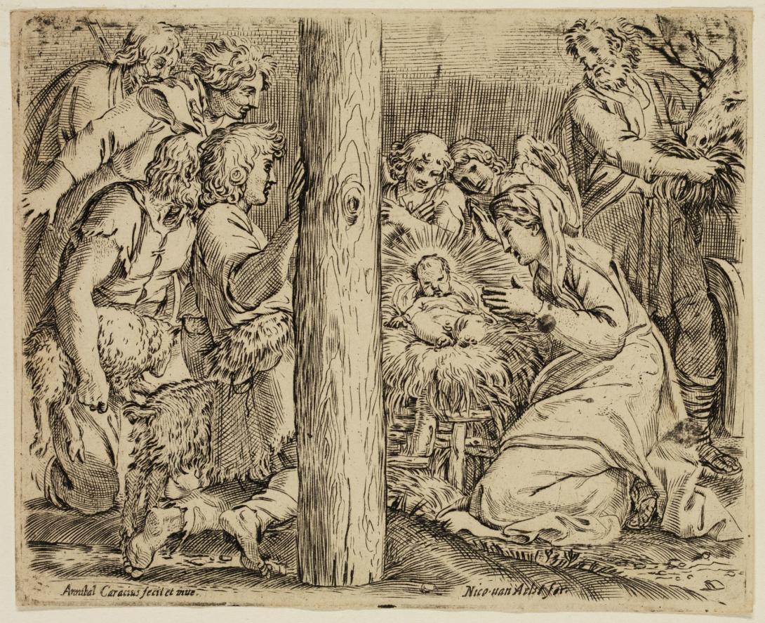 Etching and engraving by Annibale Carracci (1560-1609), Adoration of the shepherds (ca. 1606)