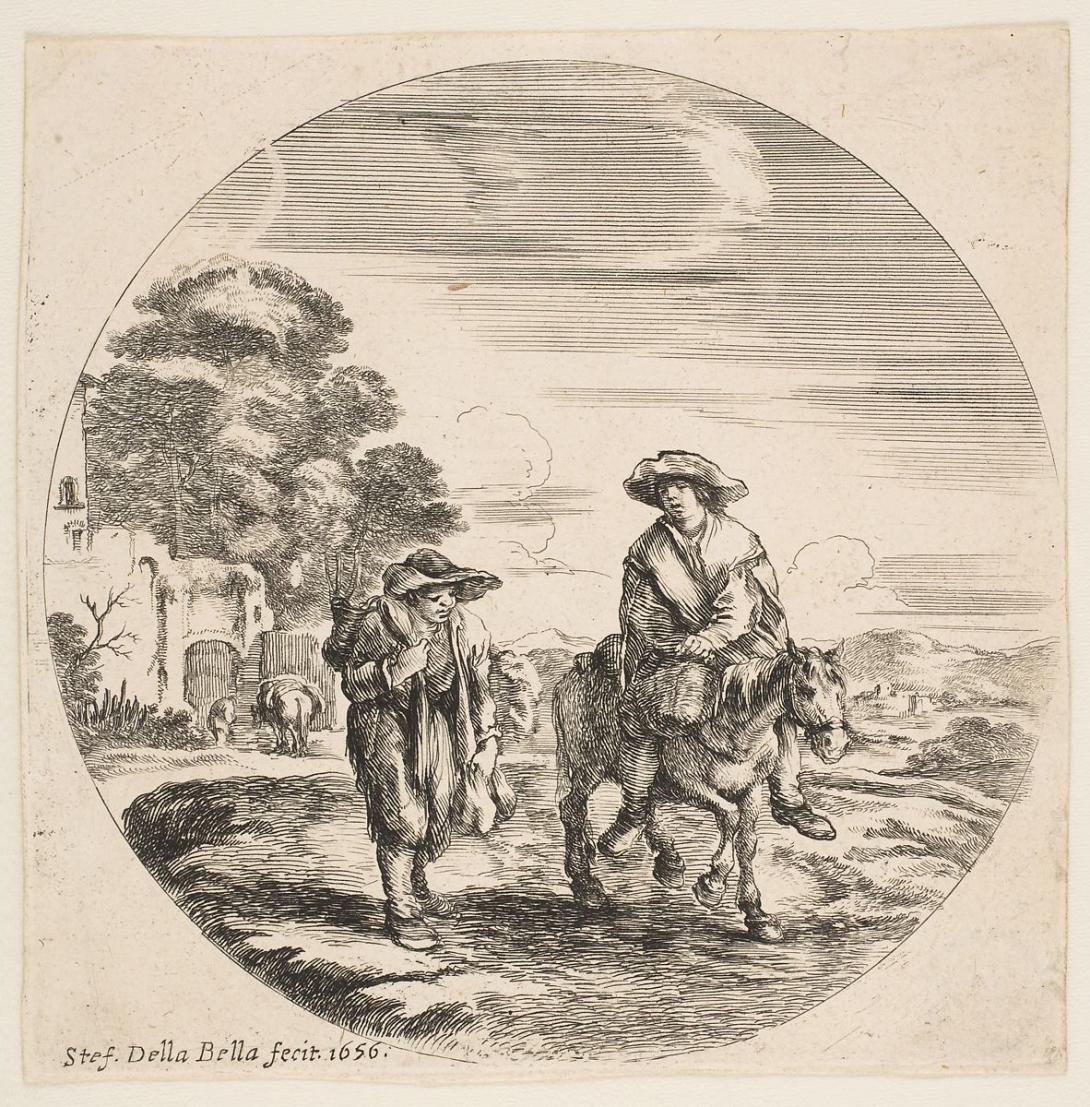 Stefano della Bella (1610–1664) executed a set of six etchings in the series "Paysages et ports de mer, dans des ronds" (Landscapes and seaports, in the round) in 1656; an example is pictured here.