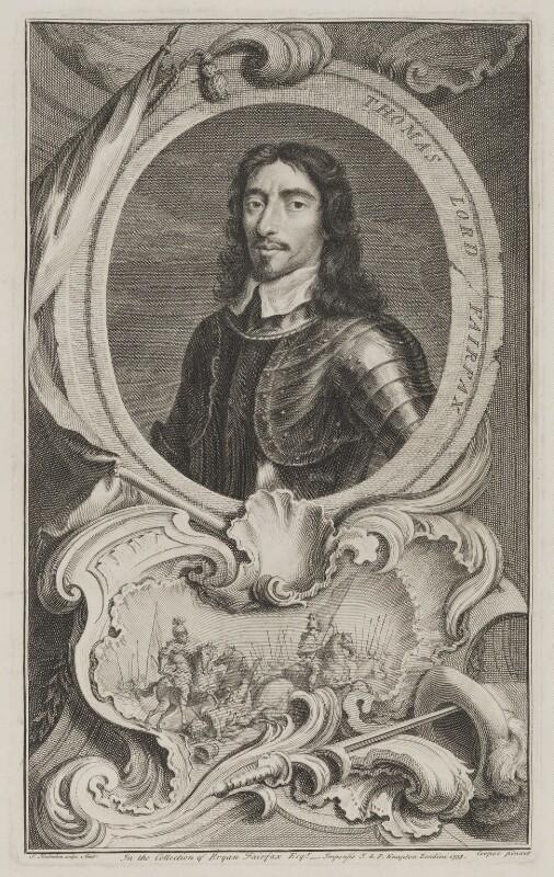 Line engraving by Jacobus Houbraken (1698-1780), after Samuel Cooper (1609-1672), Thomas Fairfax, 3rd Lord Fairfax of Cameron (1738)