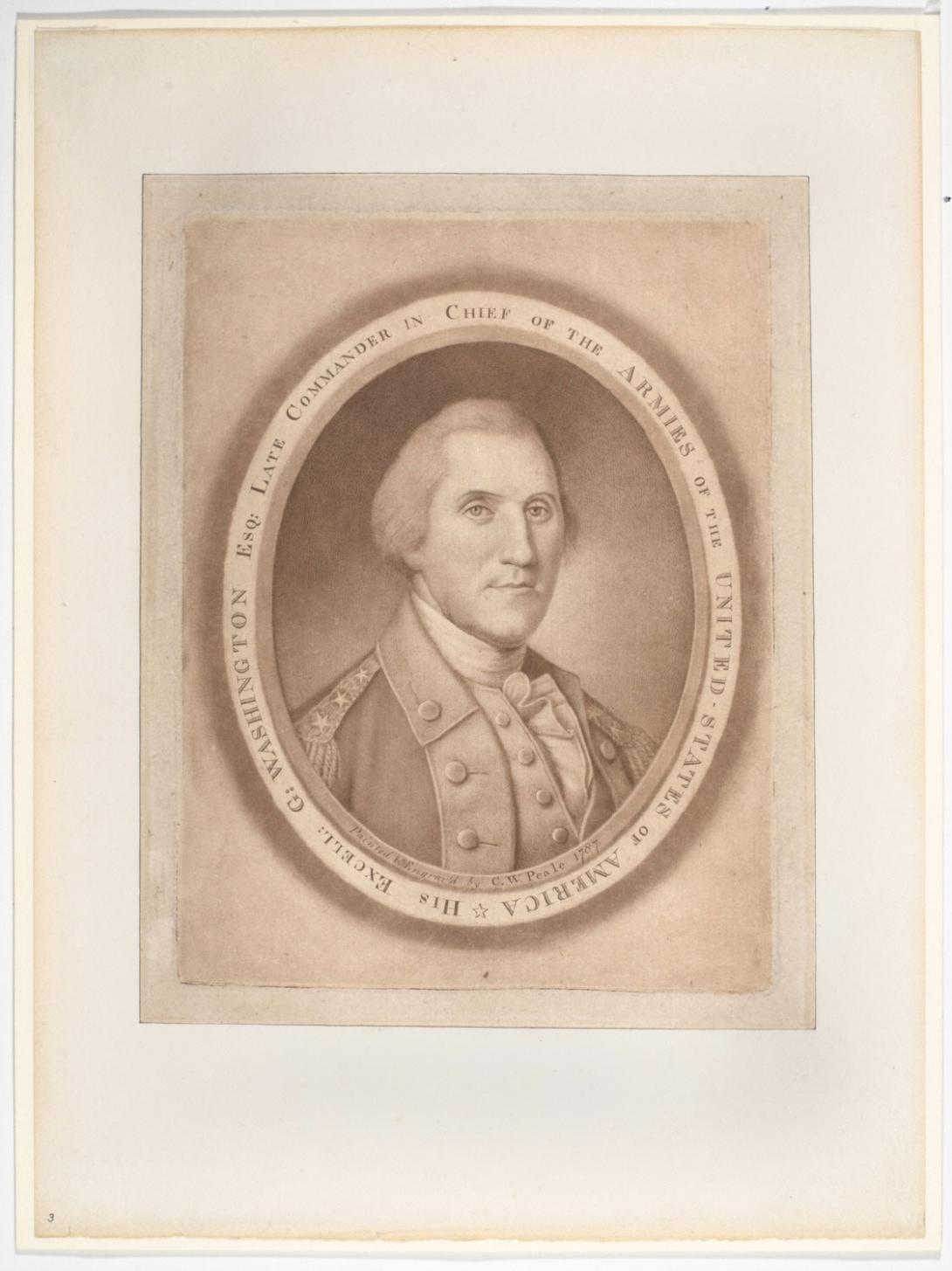 For Peale's 1778 mezzotint, the first authentic likeness of Washington to appear in print, see Wendy Wick Reaves, "'His Excellency Genl Washington': Charles Willson Peale's Long-Lost Mezzotint Discovered," American Art Journal, Vol. 24, no. 1/2 (1992): 44-59.
