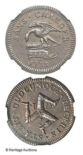 In 1733 coins of the Isle of Man were issued by the King of Man (or Mann). The penny example of 1733 pictured here was minted to recognize James Stanley, 10th Earl of Derby, then the King of Man.