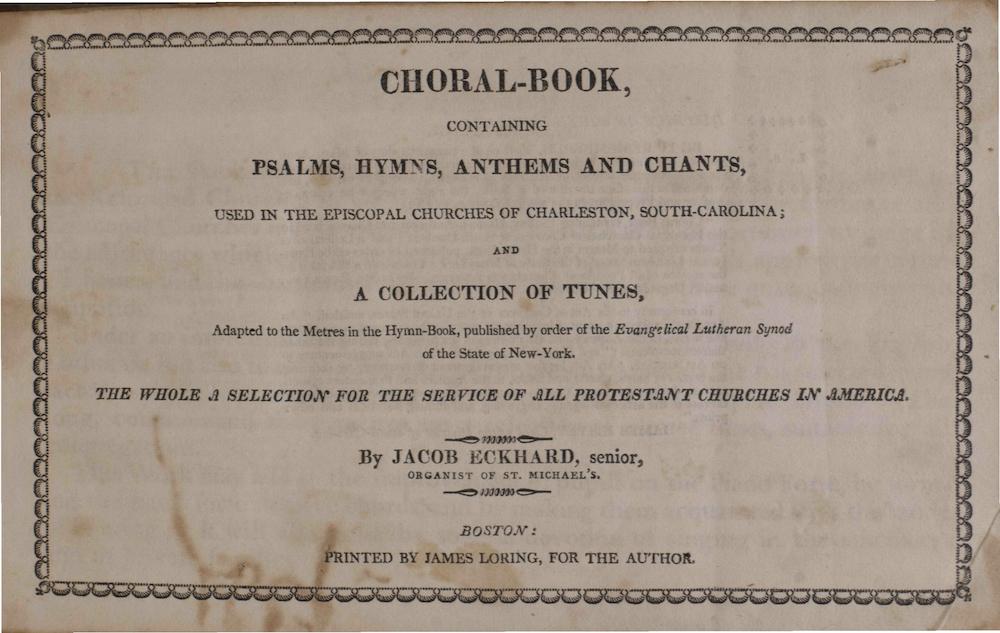 Jacob Eckhard was the organist of St. Michael's Episcopal Church, Charleston, S.C. See George W. Williams, "Jacob Eckhard and His Choirmaster's Book," Journal of the American Musicological Society,
