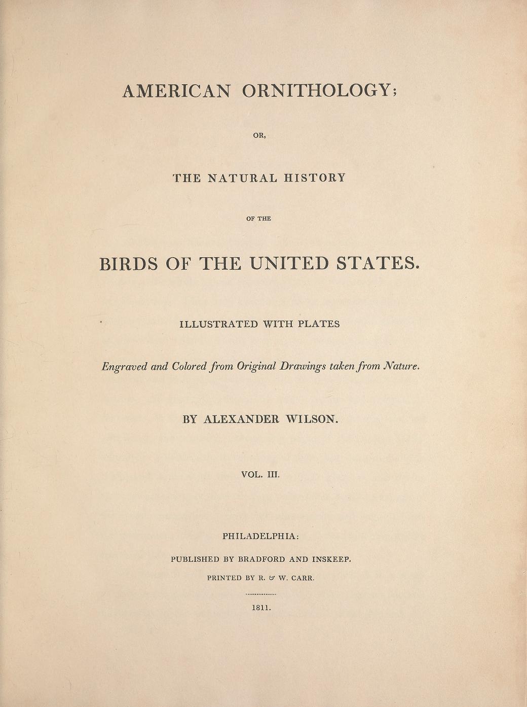 American Ornithology; or, The natural history of the birds of the United States: illustrated with plates engraved and colored from original drawings taken from nature