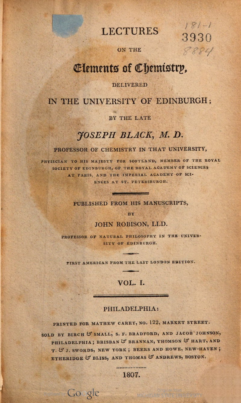 Lectures on the Elements of Chemistry delivered in the University of Edinburgh
