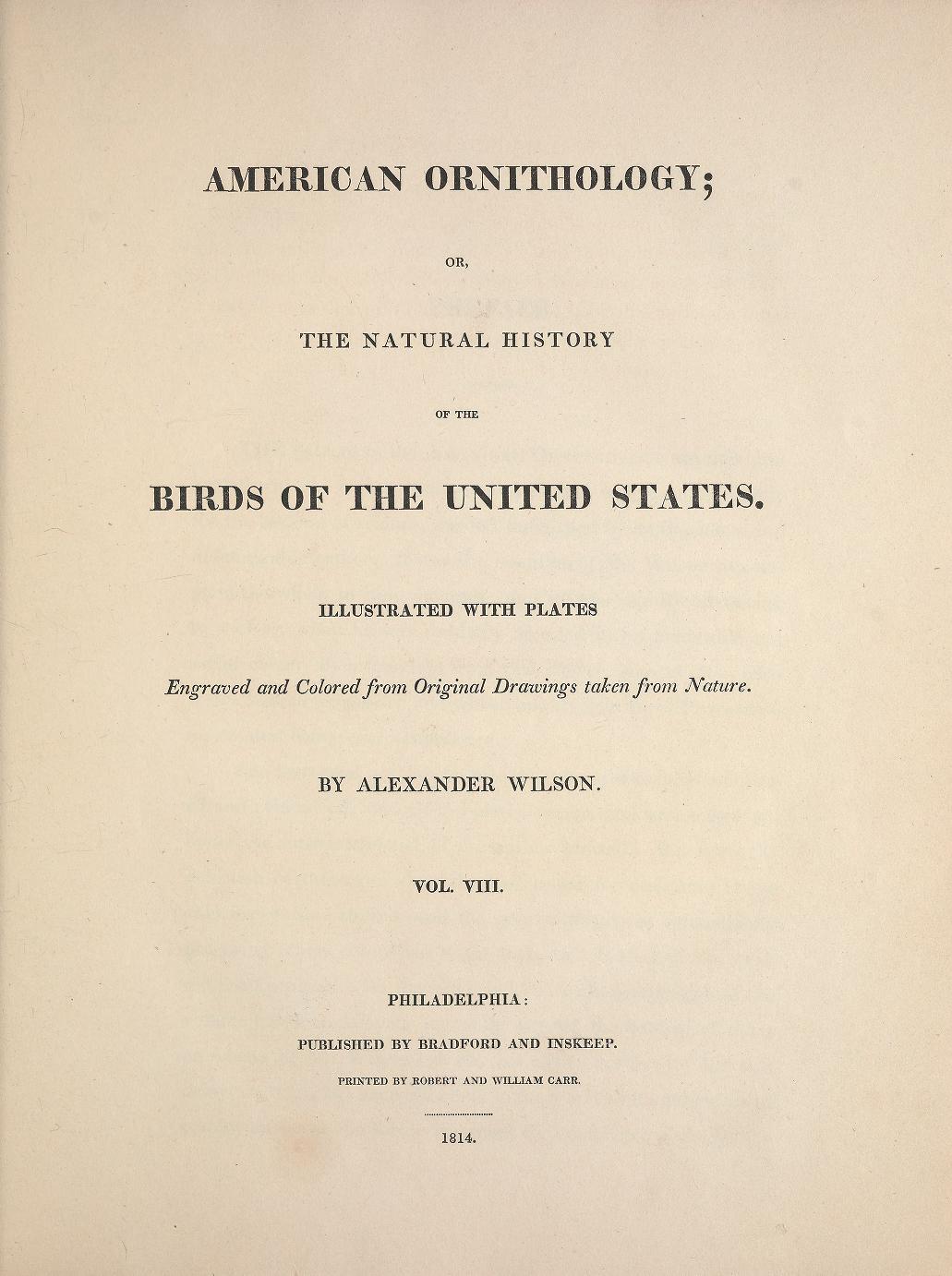 American Ornithology; or, The natural history of the birds of the United States: illustrated with plates engraved and colored from original drawings taken from nature