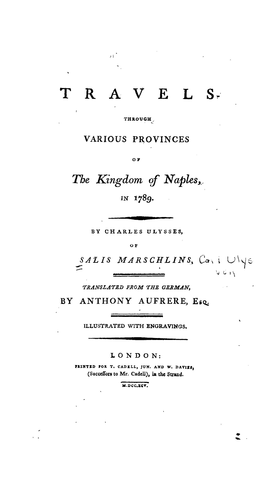 Travels Through Various Provinces of The Kingdom of Naples, in 1789. Translated from the German, By Anthony Aufrere, Esq. Illustrated with Engravings
