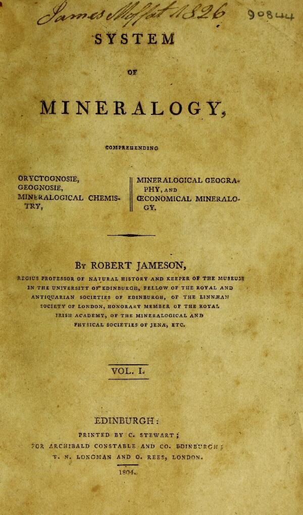 System of mineralogy: comprehending oryctognosie, geognosie, mineralogical chemistry, mineralogical geography, and economical mineralogy