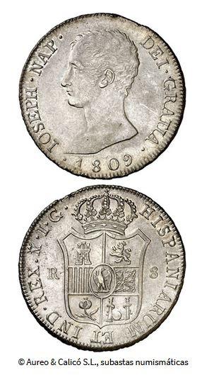The Peale Museum's coin may have resemebled this silver 8 reales piece struck in 1809, during the reign of Spanish King Joseph-Napoléon Bonaparte (1768-1844; reigned 1808-1813).